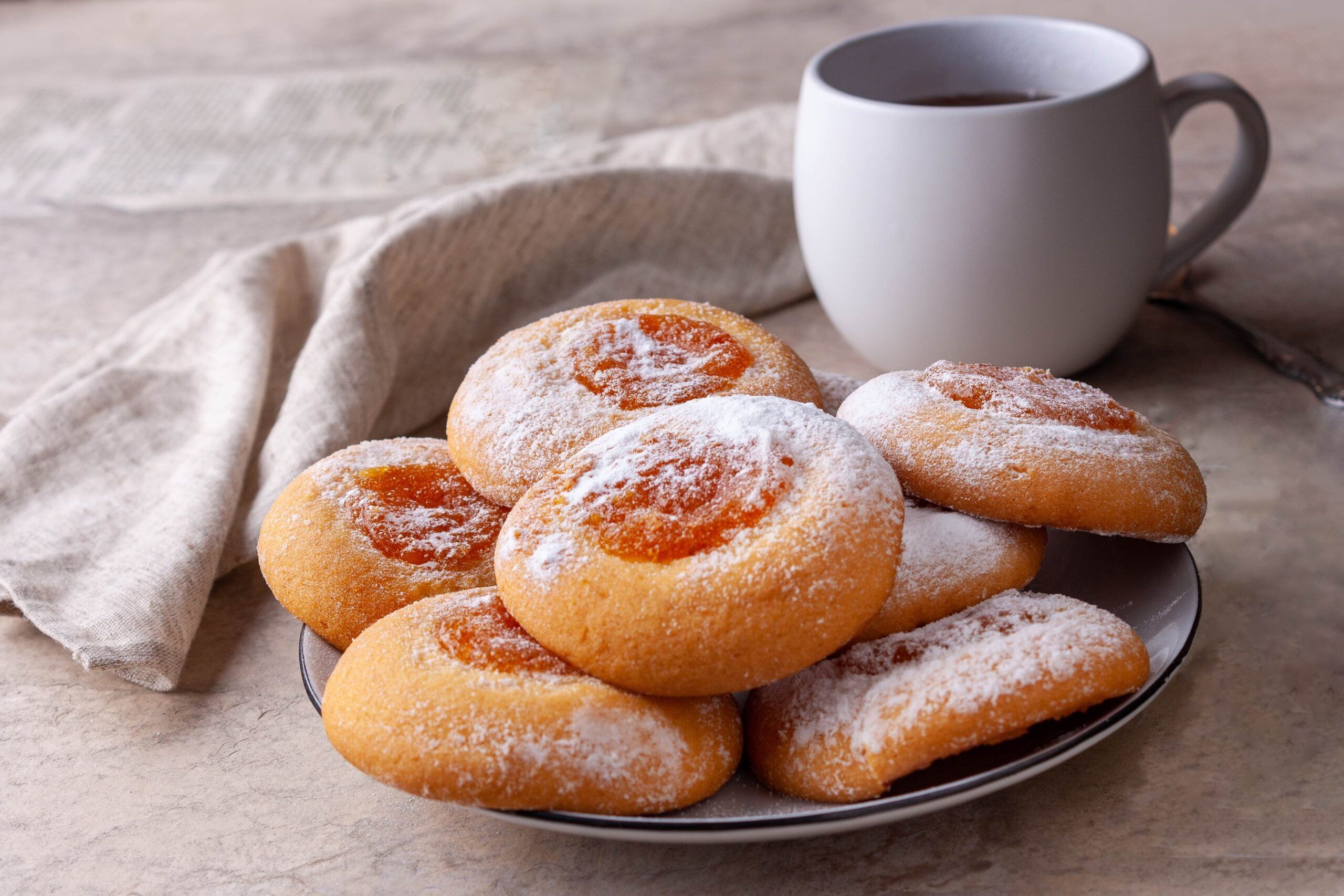 Small pastries accompanied by fruit compote or honey from our bees
