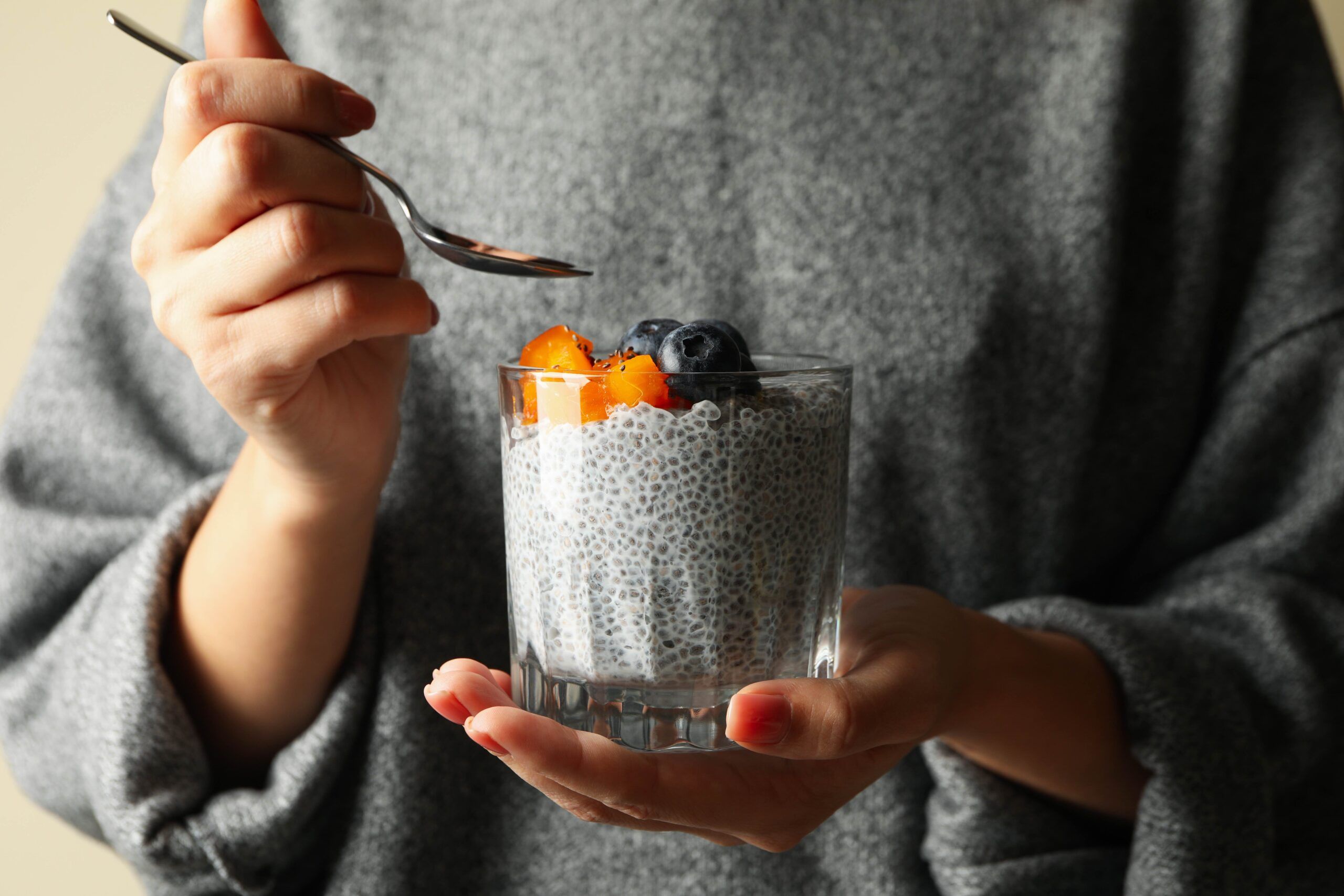 Chia seed pudding with blackberries and crunchy granola
