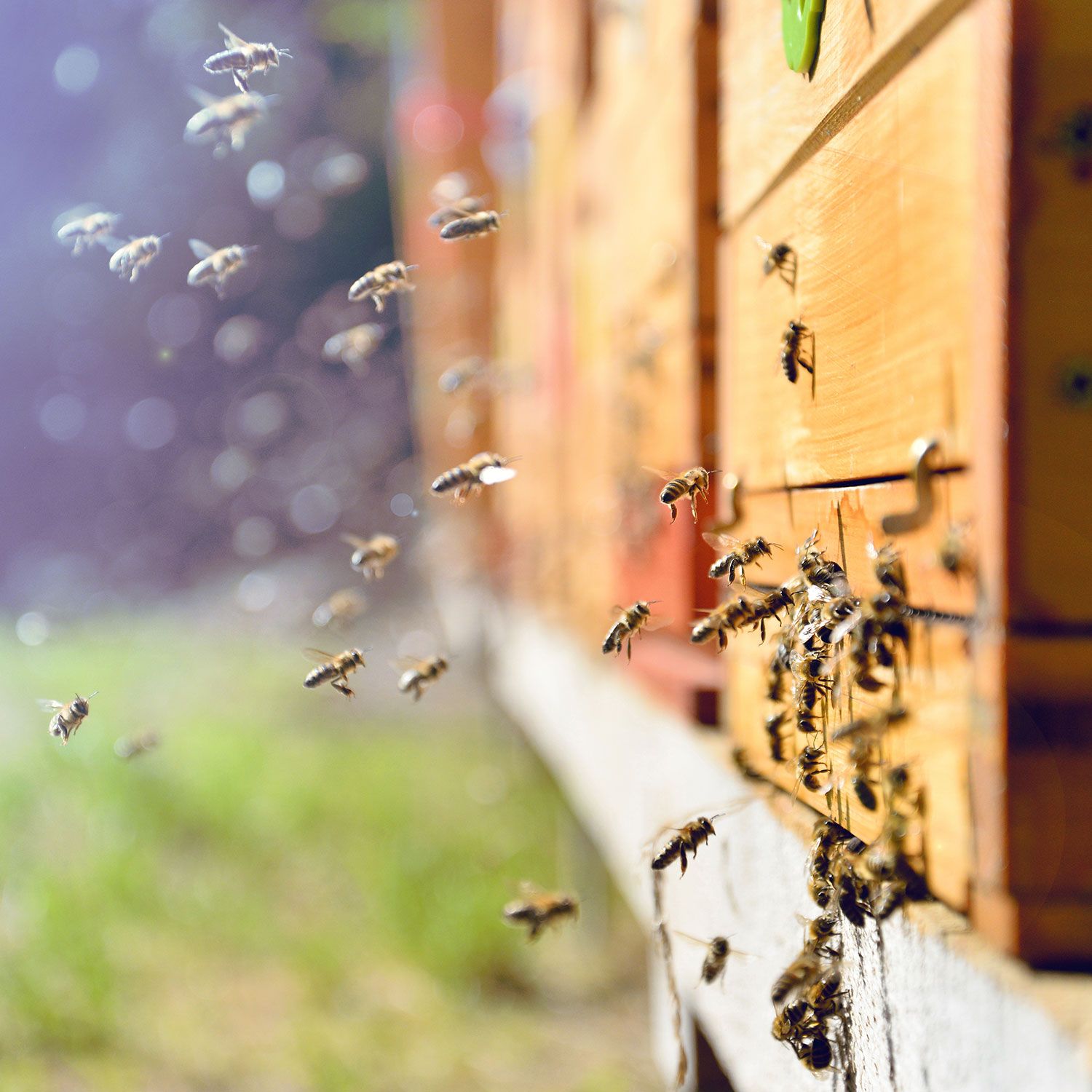 Appena i favi maturano, estraiamo il miele con una semplice centrifugazione, lo lasciamo decantare nei maturatori e lo invasiamo senza ulteriori trattamenti. Il nostro ciclo segue le fioriture stagionali: si inizia a maggio con l’acacia; tra giugno e luglio, durante la fioritura del rododendro, portiamo gli alveari sui versanti alpini più soleggiati, tra i 900 e i 1500 metri, dove possono volare anche oltre i 2000 metri per raccogliere un nettare purissimo.