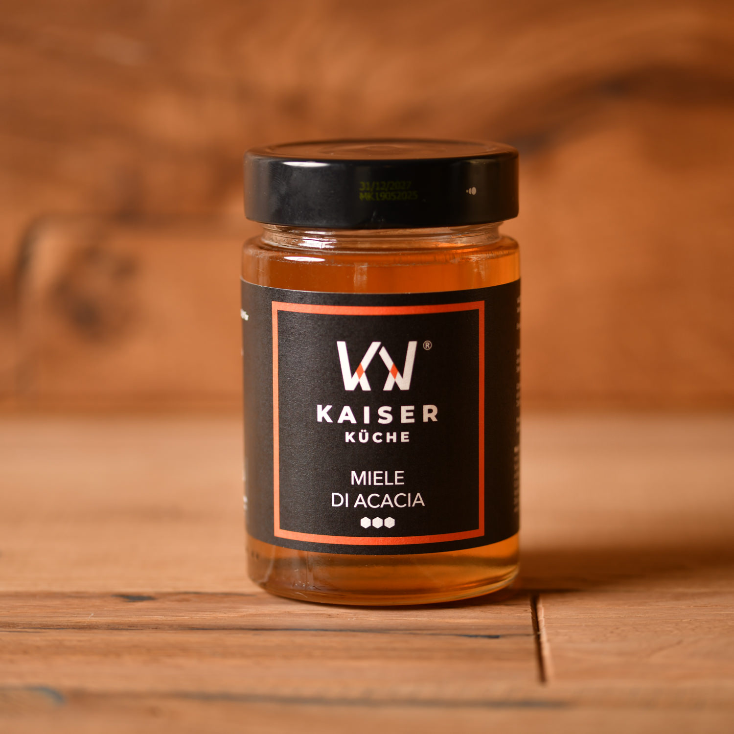 Il miele di acacia è molto chiaro, quasi trasparente e di consistenza liquida. Ha una velocità di cristallizzazione molto bassa e può rimanere allo stato liquido per lunghissimo tempo, grazie alla sua elevata concentrazione di fruttosio rispetto al glucosio. Al contrario i mieli che hanno un rapporto inferiore, tendono a cristallizzare più rapidamente.
